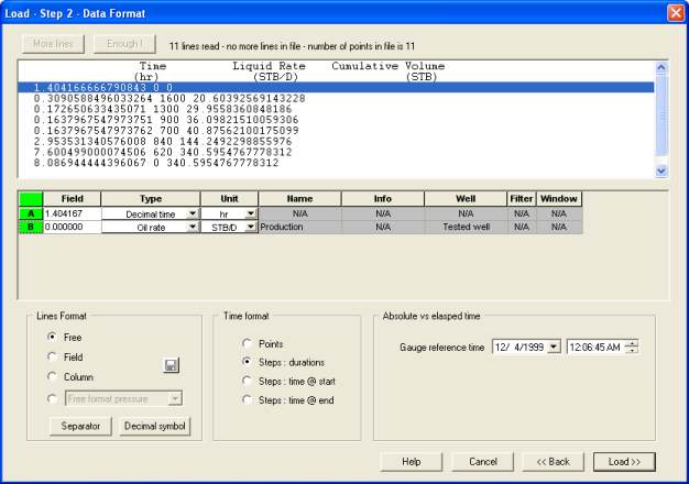 gned the first column as 'Decimal Time' and the second as 'Oil Rate'. This