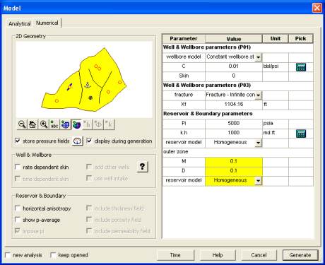 Generate the Numerical model. Figure D01.1 left; model dialog and Figure D01.1 right, the