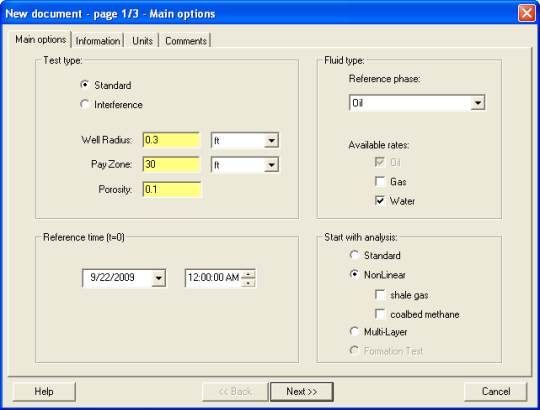 Run Saphir and start a new project. Keep the well and reservoir characteristics at the default