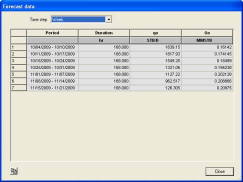 Fig. D01.3 • Viewing the forecast simulation result in a tabular format.