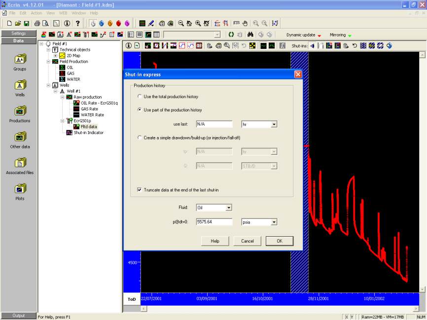 rate history prior to the build-up we need to select a given fluid (here only Oil is available) and