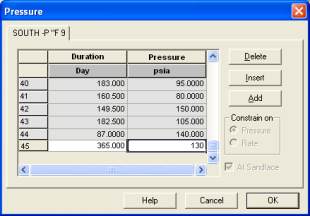 Click on Forecast, and extrapolate the current model by a constant pressure step of 130 psia
