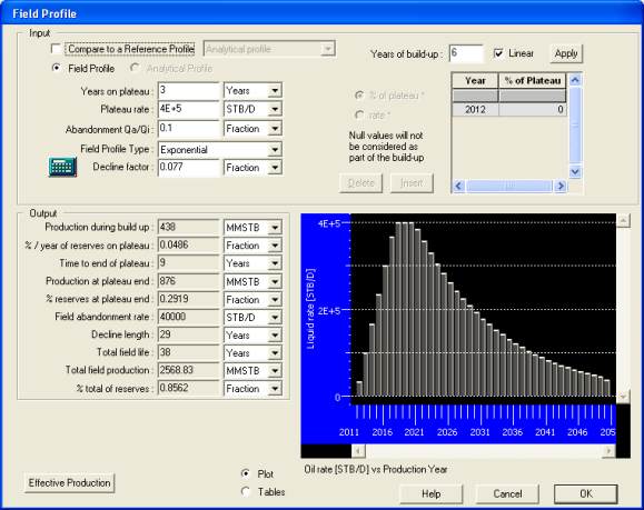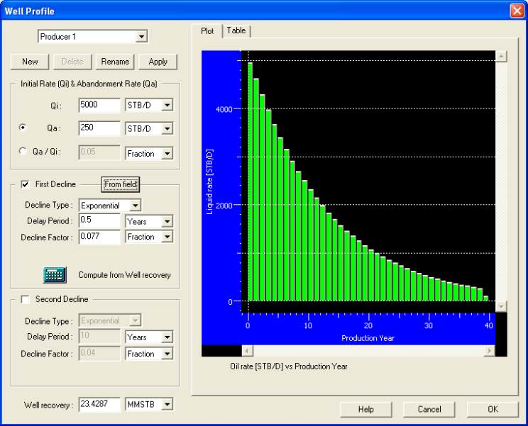 Well Profile dialog use the ‘From field’ option to adjust the decline factor from the global field