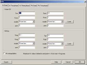 Click on the KrPc icon to edit the reservoir relative permeabilities and capillary pressures: