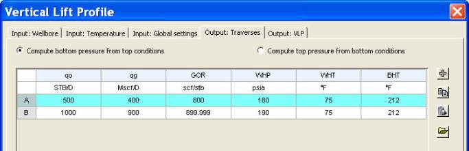 The ‘Output: Traverses’ tab is where different production conditions can be specified. The well