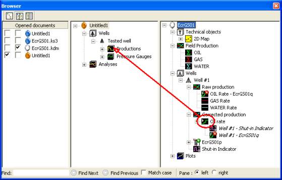 Fig. F01.3 • Browser, drag and drop the 'Corrected OIL Rate' from Diamant to Topaze