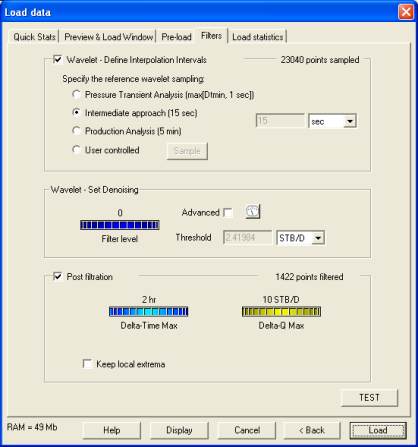 Once the filter parameters are selected the file can be loaded by parts of 100,000 points.
