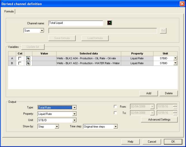 the derived channel dialog is displayed, Fig B01.9. Name the channel ‘Total Liquid’, and click