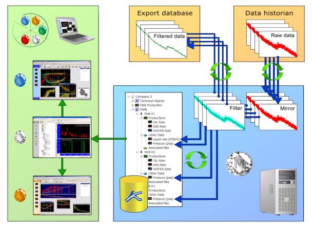 the raw data (Historian database) for fast processing, reduces the number of points with