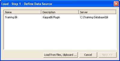 In the 'Data source' dialog select the 'Training Bli' created by the IT engineer. Press 'Next'.