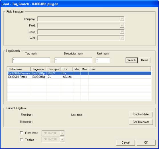 In the 'Tag Search' dialog press on ‘Search’ to display the available tags.