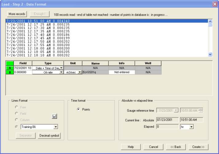 In the Load–Step 2 dialog, change the data type to Oil rate in m3/sec: