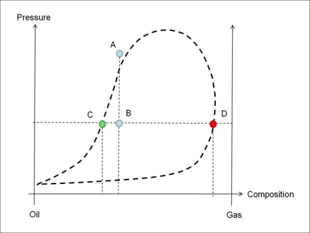 (Figure 31). Point A corresponds to the composition of the original oil in place at the initial