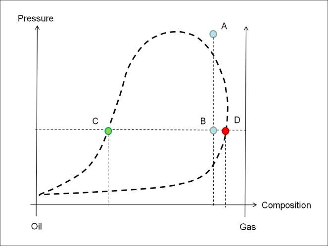 production phase), an oil condensate appears if the final pressure is below Pd. Oil and gas are