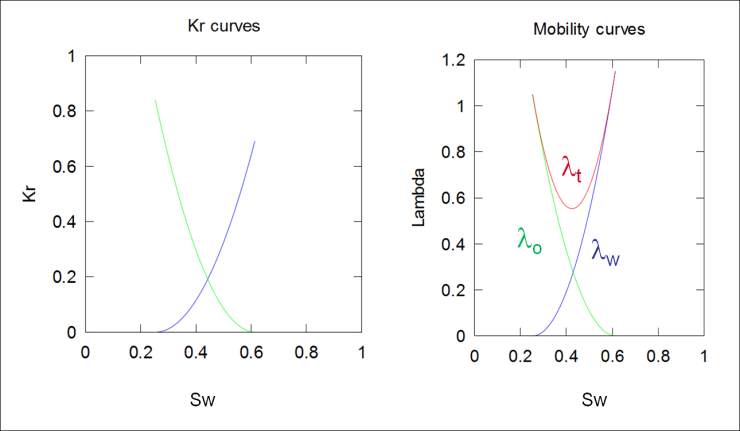 fluids are assumed incompressible. From viscosity values and kr curves, the oil, water and
