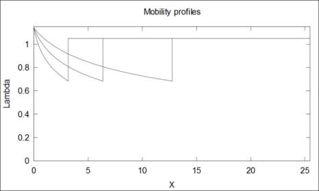 Figure 6: Saturation and mobility profiles at 3 different times,